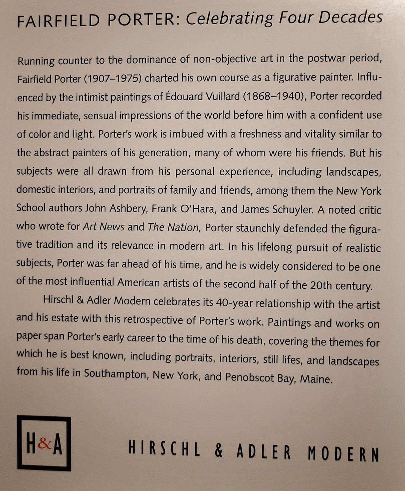 Below is the information card posted by Hirschl & Adler, about the artist: Fairfield Porter.